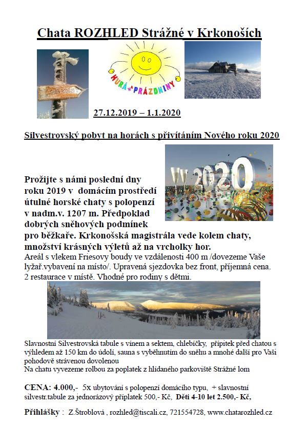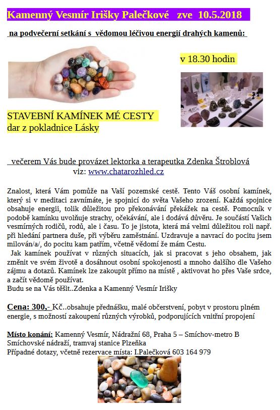 Pro Vás, kteří nemáte ještě program na konec roku, je určený seminář 29.12. 2017 - 1.1. 2018 SPIRÁLA ŽIVOTA. Letáček pod semináři. Lepší než sedět u televize je popojít ve své vizi co si přeji. Jak život smysluplně naplnit. Pojďte se do spirály změny připojit. Bude čas na zimní radovánky, meditaci i legraci. Půlnoční pohled do údolí na ohňostroje patří k nezapomenutelným zážitkům. Můžete přijet i dříve, jen tak a k programu se připojit v pátek. Jen připomínám , že je nutné se přihlásit včas. Od 14. - 27. 11. nemůžu odpovídat na mejlíky, abyste popř. nevzdali přihlášení. Přeji Vám teplo v srdíčku..Zdenka
